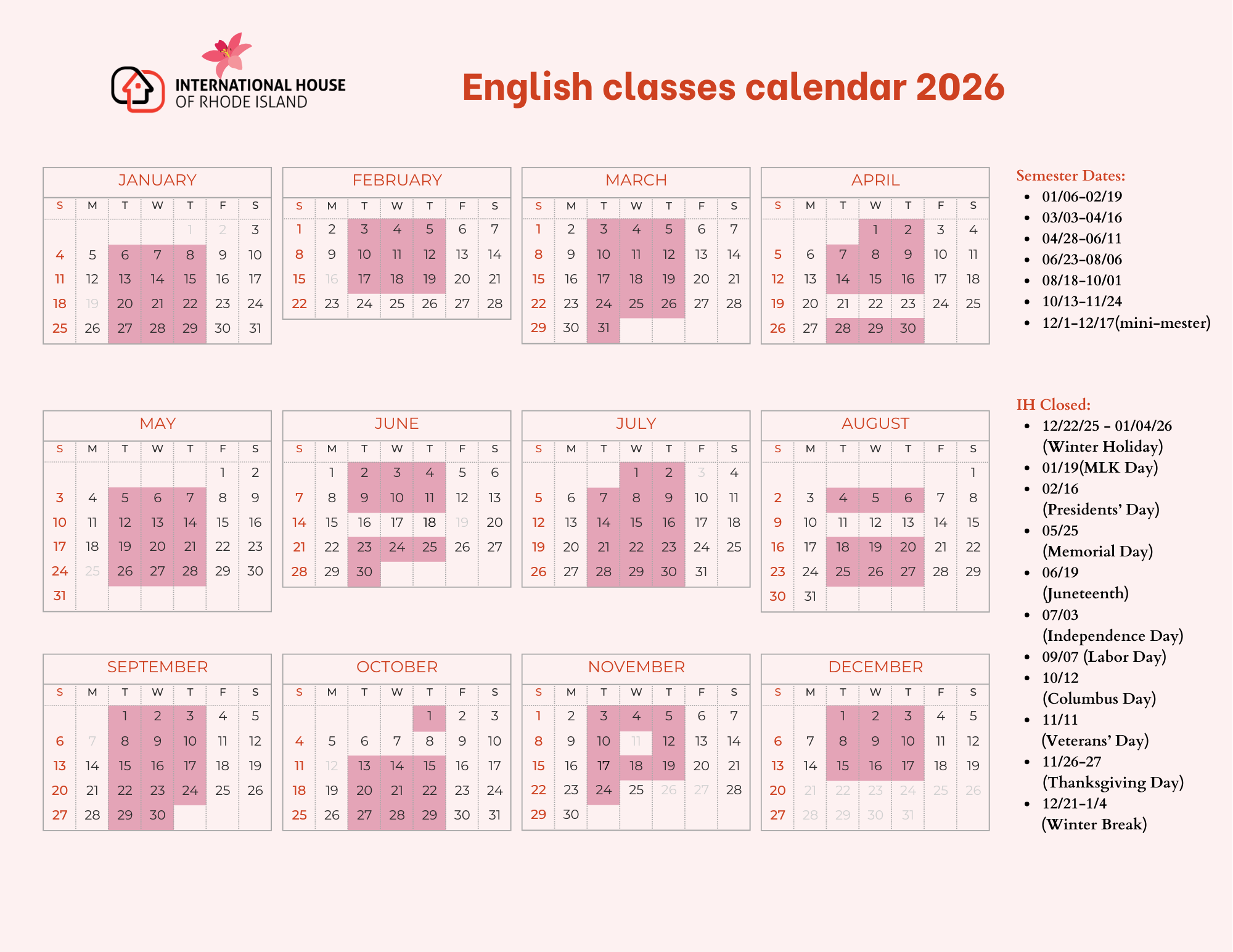 At this time, we are only offering Intermediate English and Advanced English classes for students. If you feel like you are a beginner or unsure of your level, please complete a registration form and email info@ihouse.org to schedule an assessment to determine your level.
